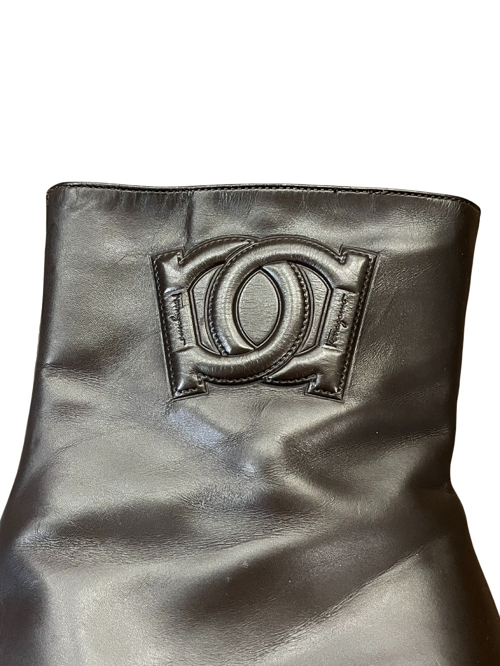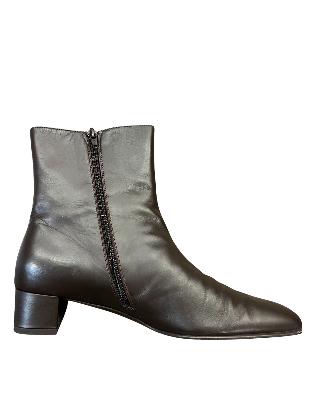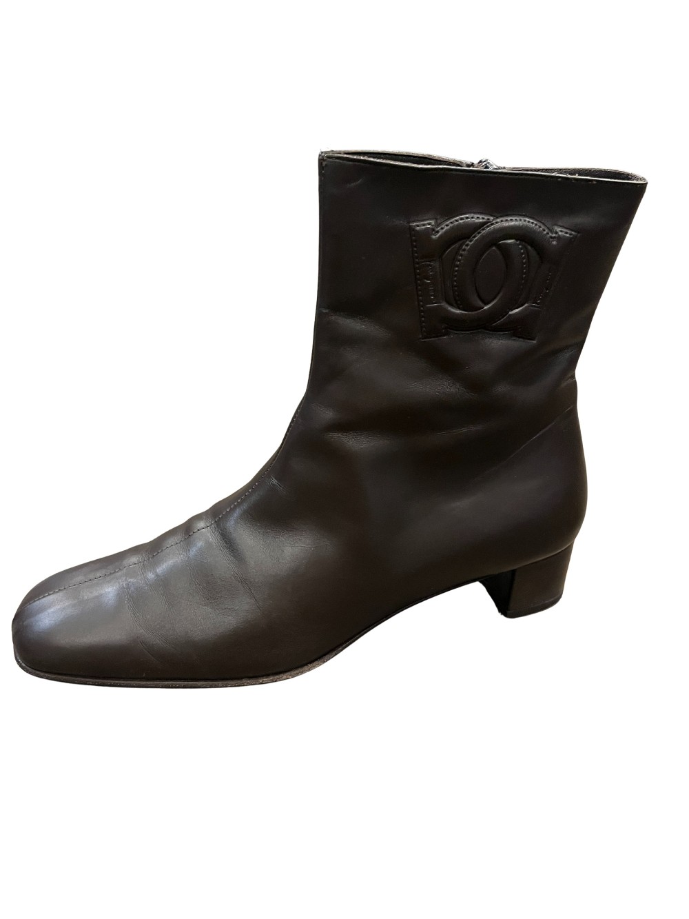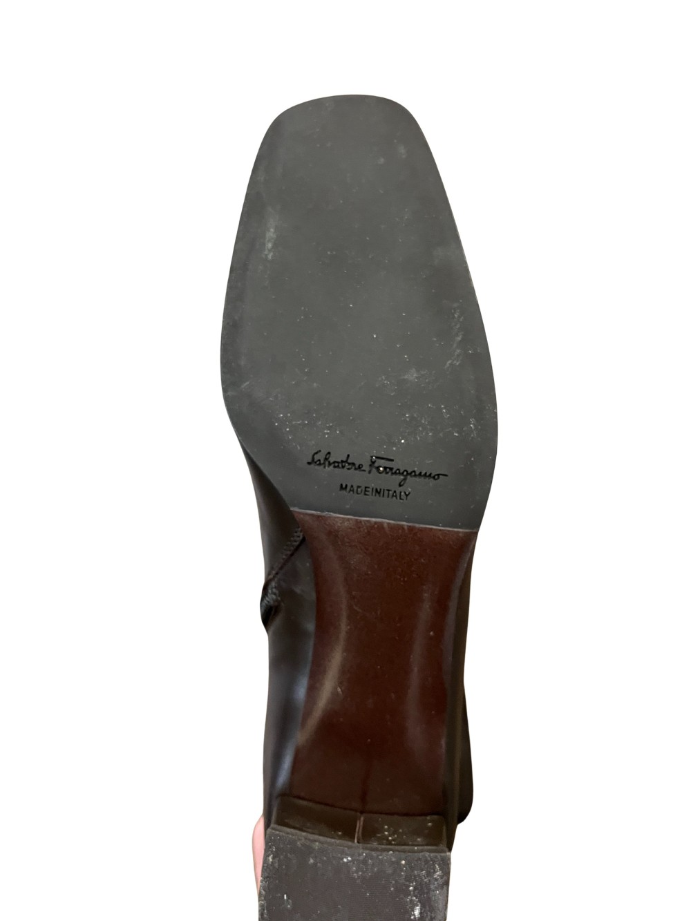 Salvatore Ferragamo Leather Ankle BootsBrownGancini LogoSquare-ToesExposed Zip Closure at SidesIncludes Box