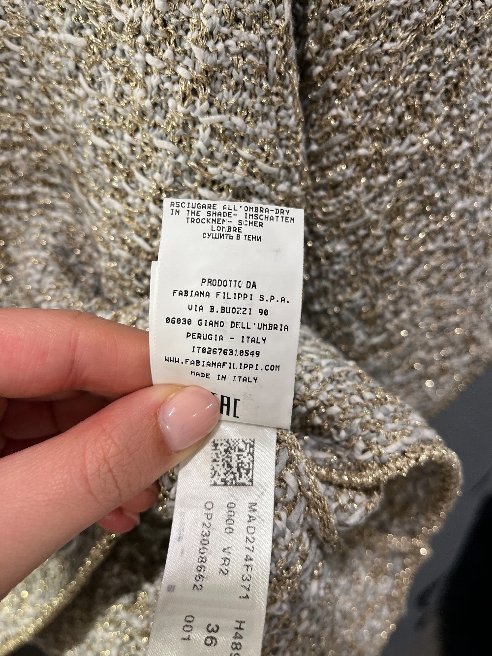 CrewneckShort sleevesPulls over66% cotton/22% viscose/12% metallized fiberHand washMade in ItalyExcellent condition