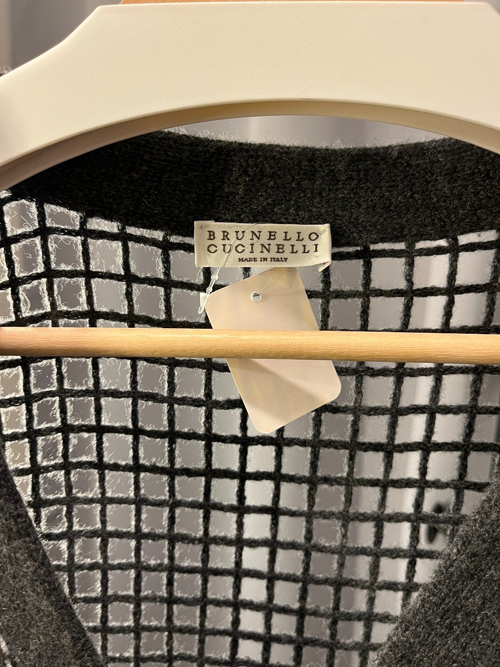 Brunello Cucinelli cashmere open grid-knit sequined top