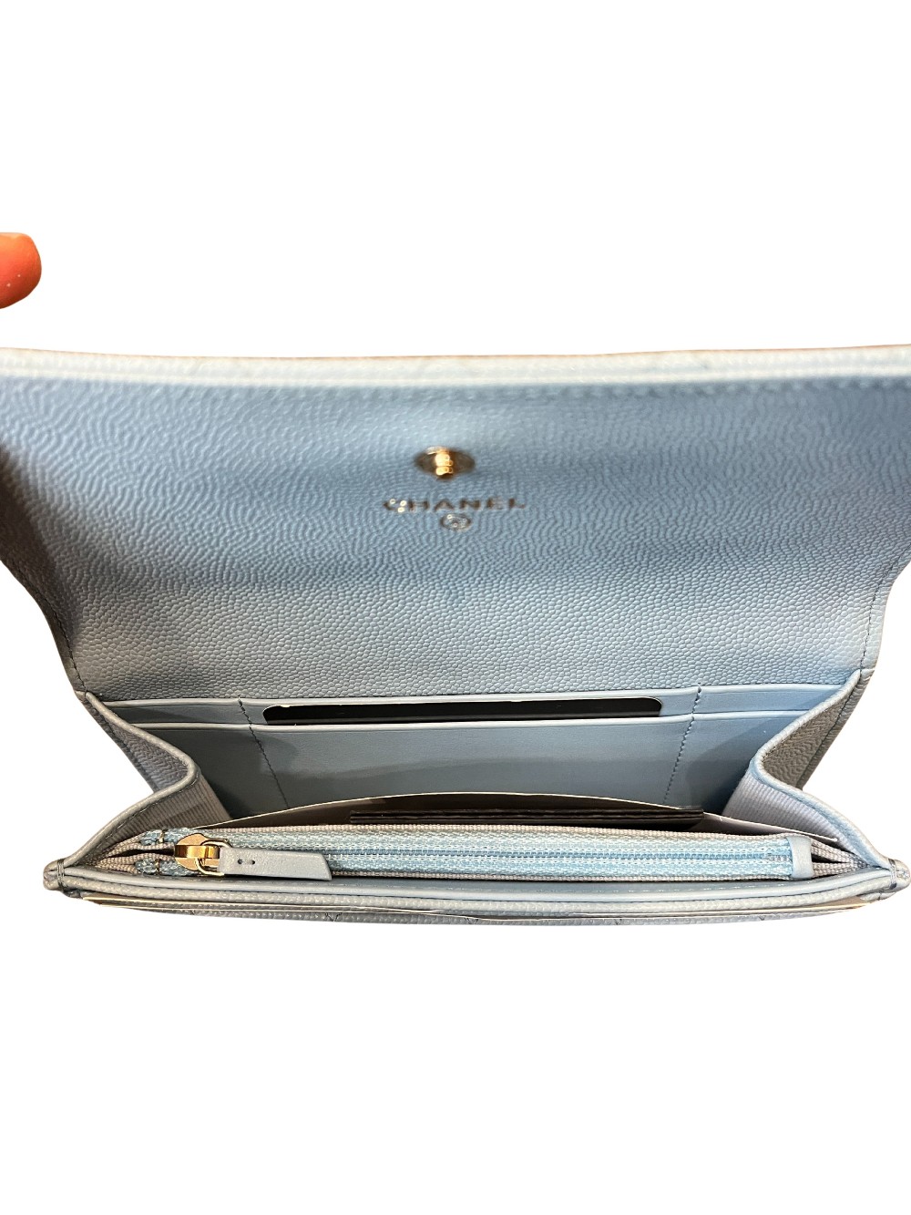 Chanel Light Blue Quilted WalletGold-Tone HardwareCrystal EmbellishmentsSnap ClosurePristine Condition