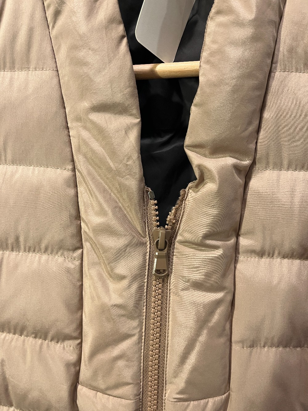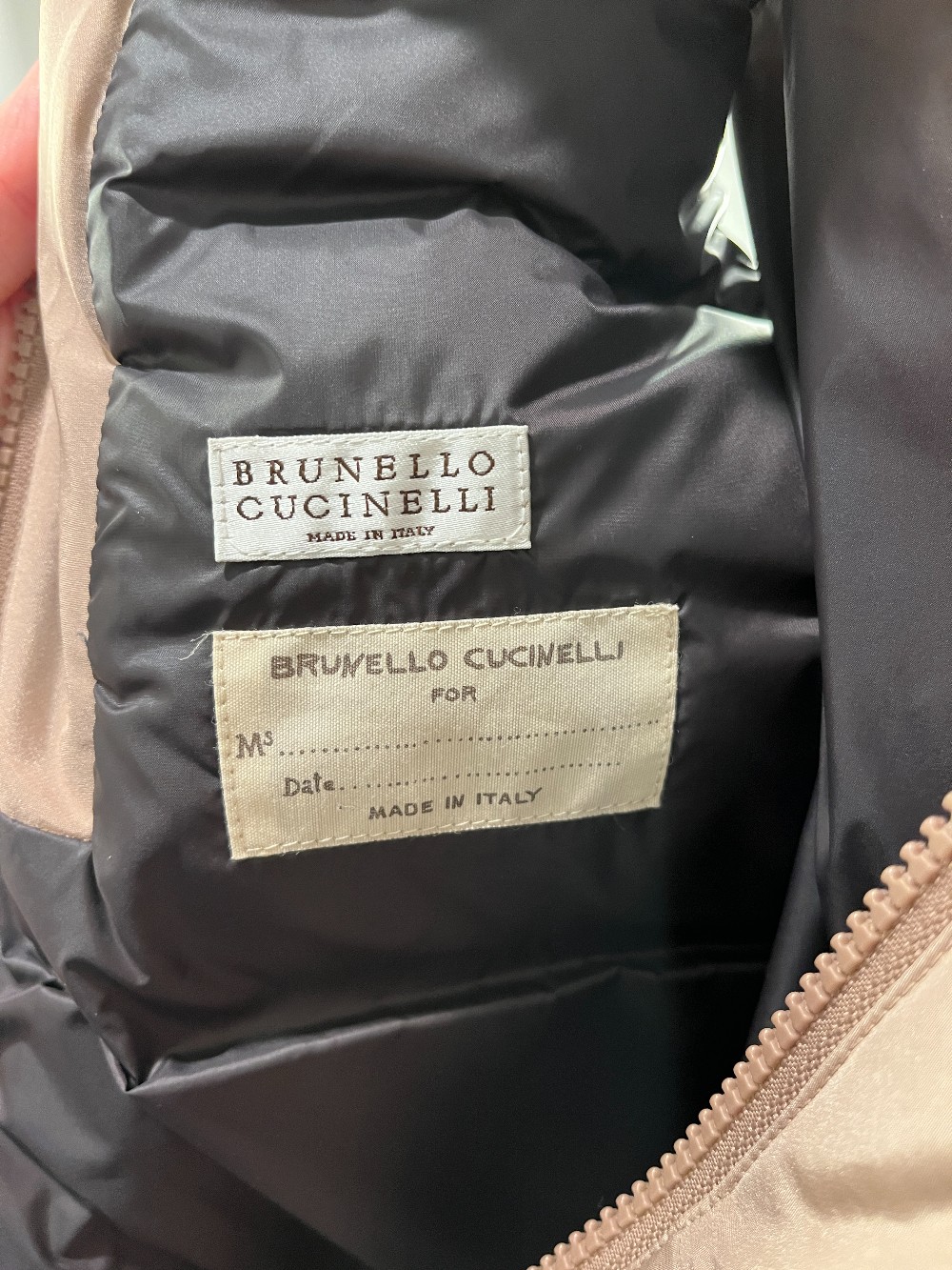 The Brunello Cucinelli Nylon Down Vest in Beige Made in Italy 100% silkFlaw at zipper shown