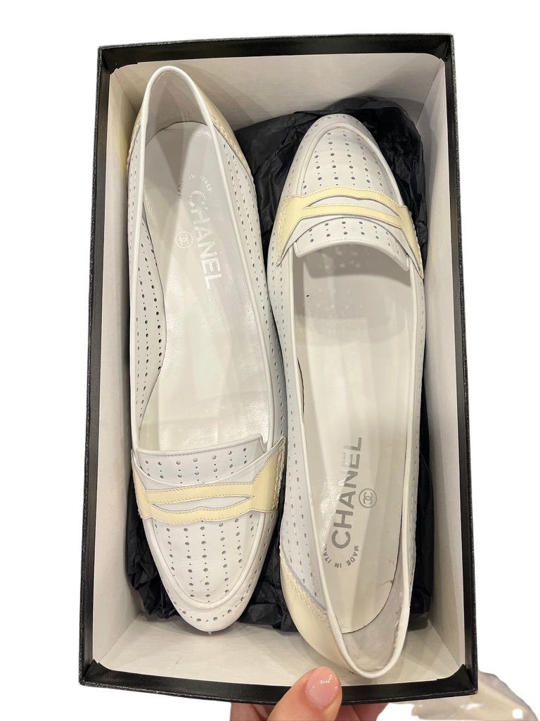 Chanel white perforated flatsGreat condition