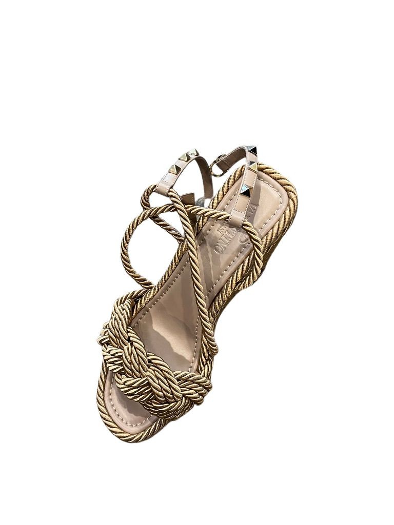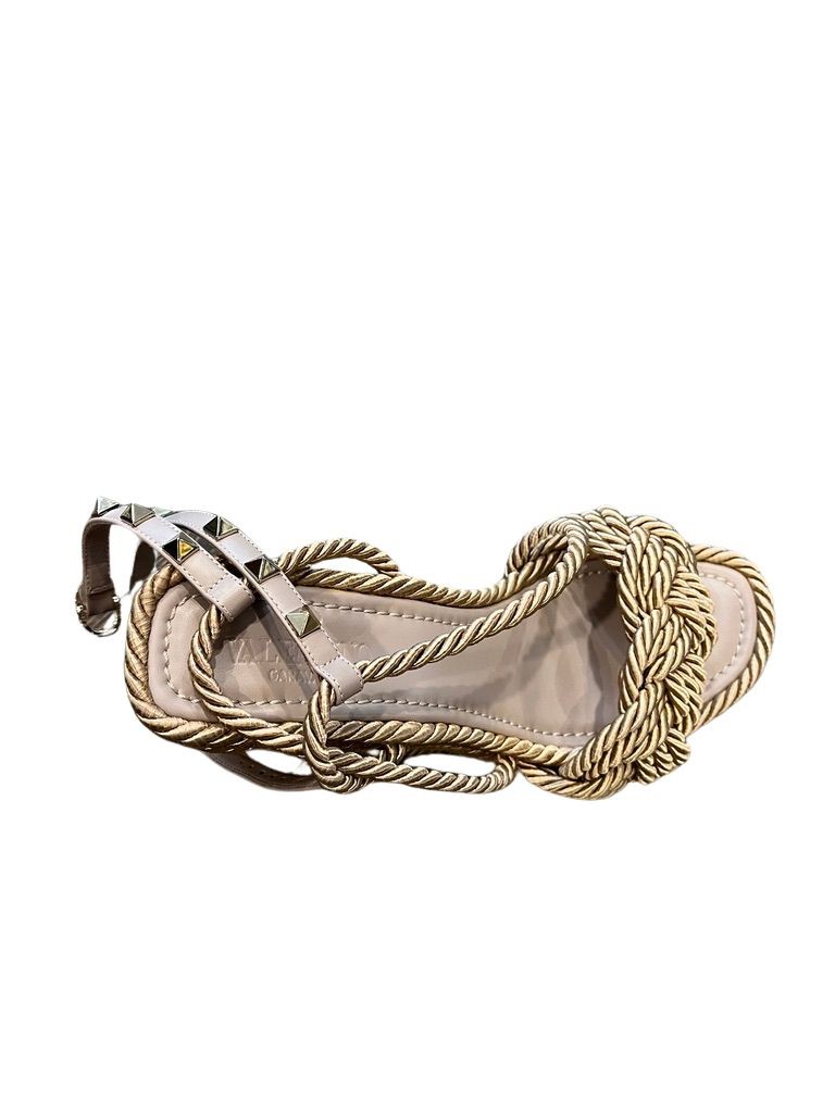 Valentino Rockstud Torchon Poudre Nude Cord Rope Wedge Ankle
