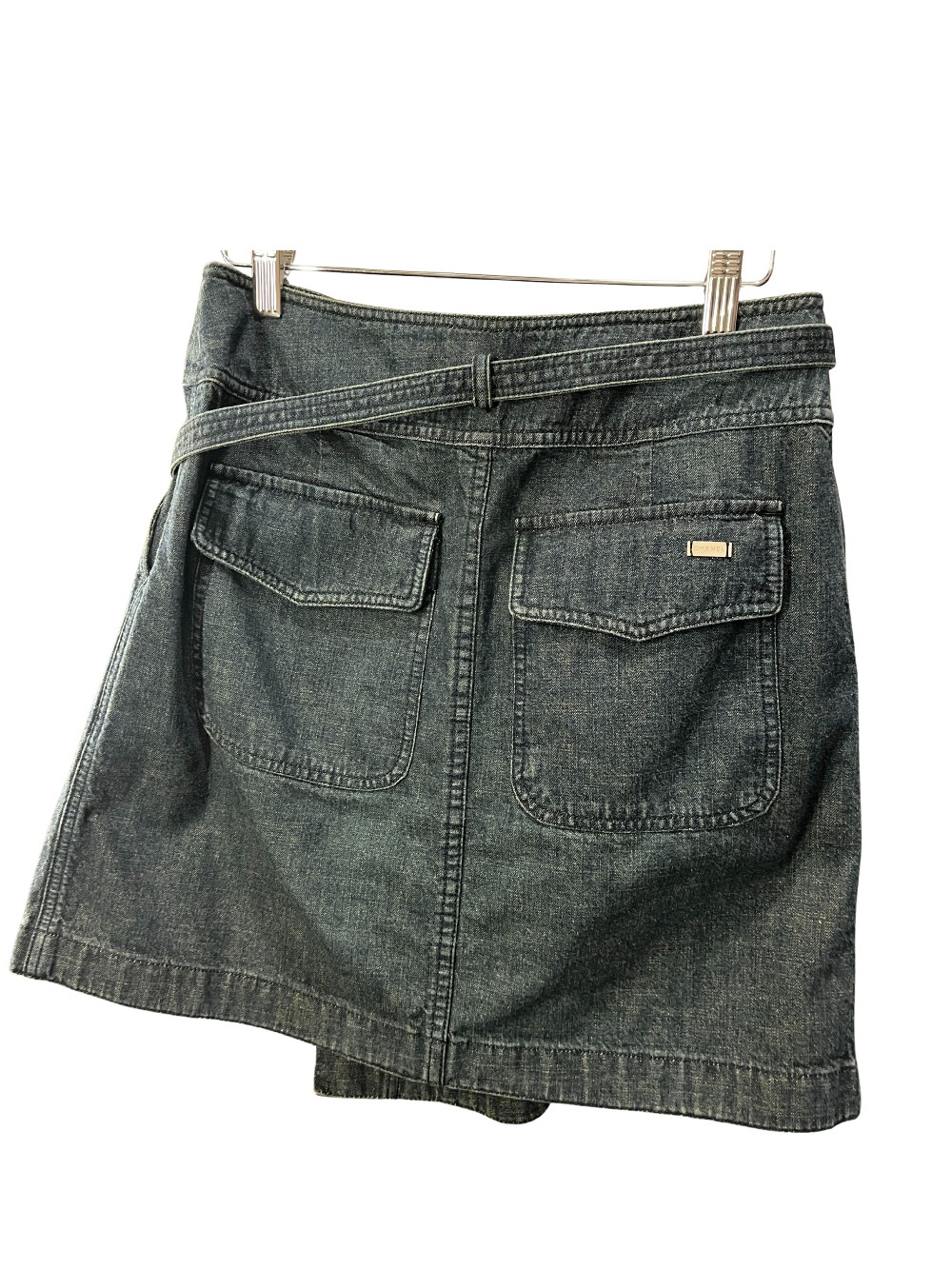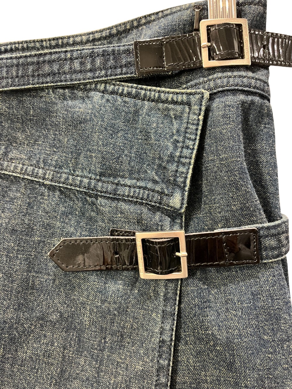 Denim wrap skirt featuring two black buckle straps with silver hardware Spring/Summer 2000 collectionExcellent vintage condition