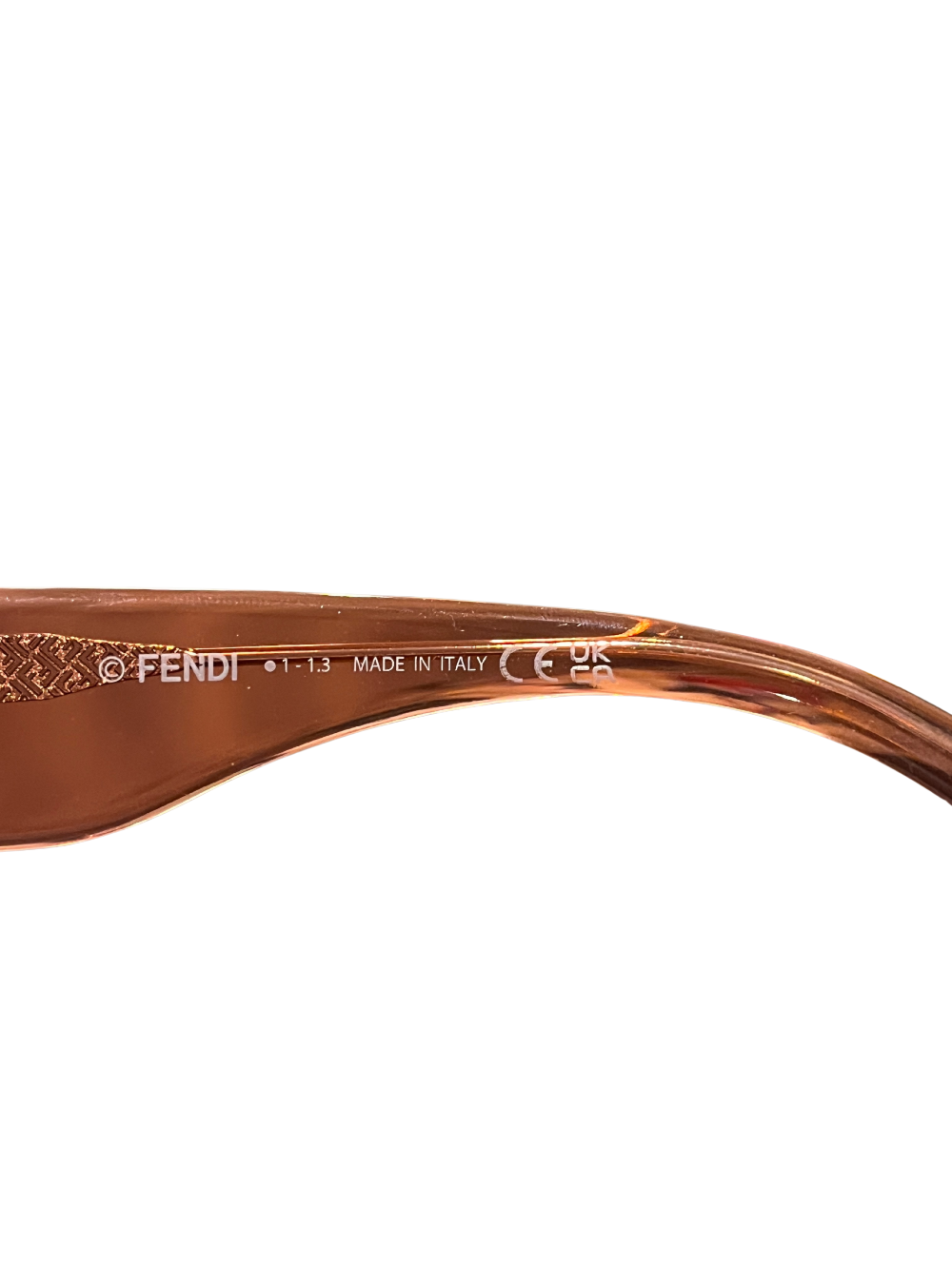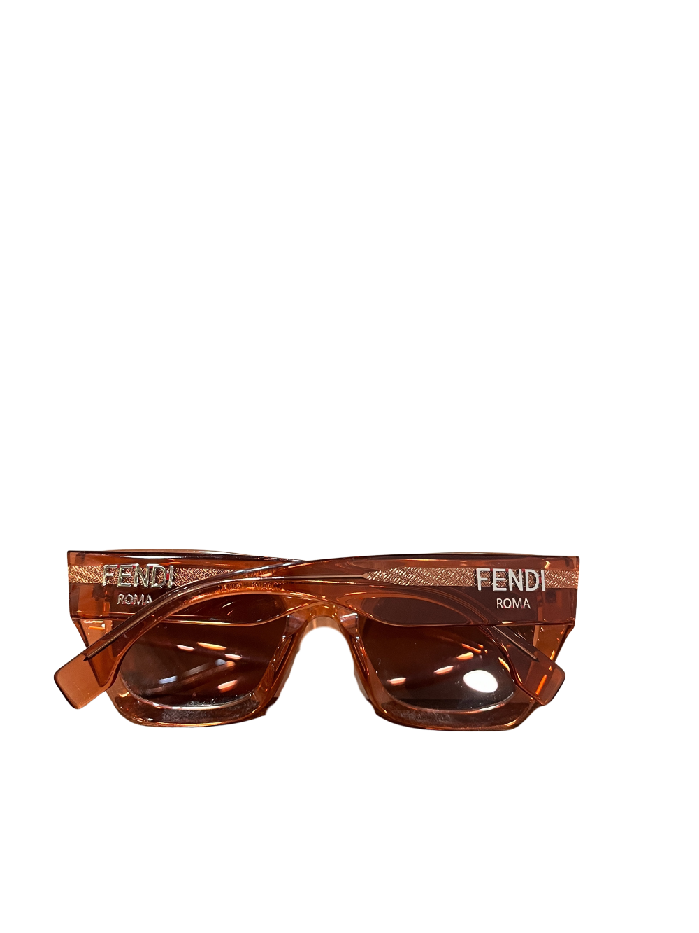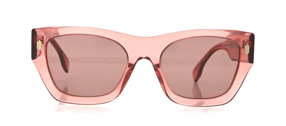 Features pink lenses, pink frames, and a silver Fendi FF logo at each hinge